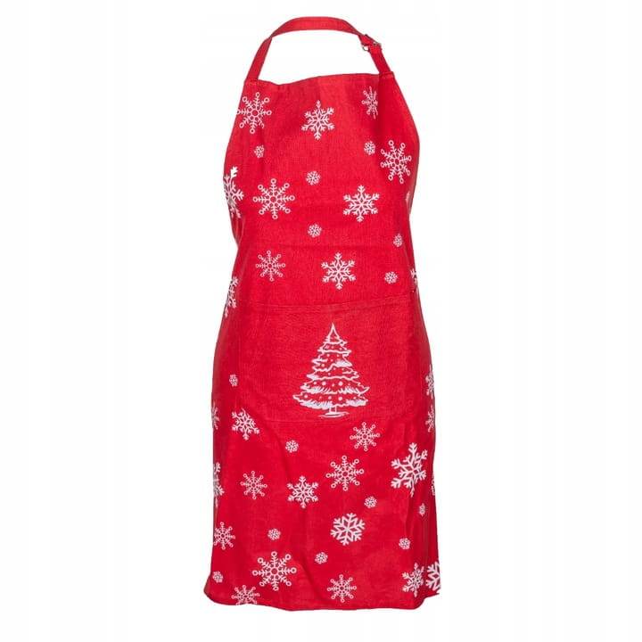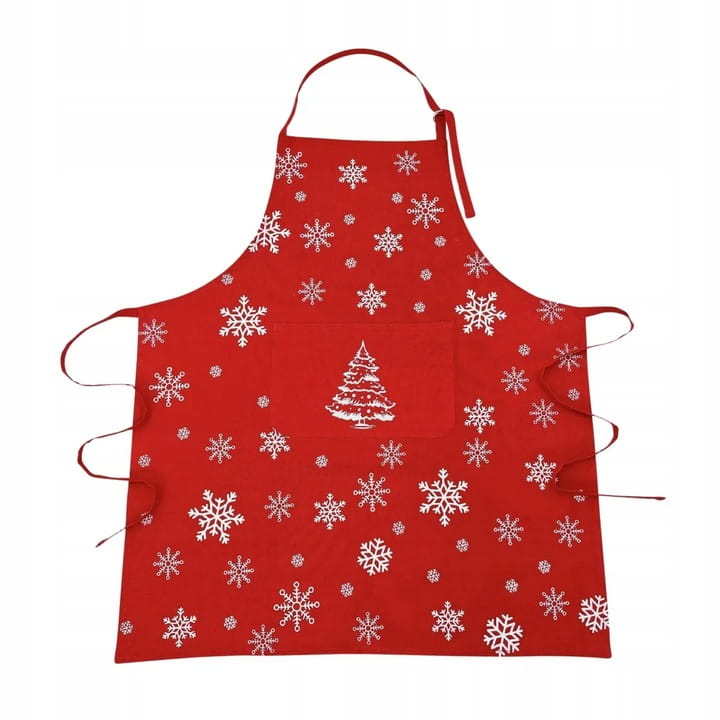 Wprowadź do swojej kuchni magię Świąt z praktycznym i dekoracyjnym fartuszkiem kuchennym Zimowa Choinka. Wykonany w 100% z bawełny, doskonale chroni ubrania przed zabrudzeniem, a przy tym świetnie wygląda. Czerwony materiał zdobiony świątecznymi choinkami i płatkami śniegu wprowadza wyjątkowy klimat, który pokochasz od pierwszego użycia.
