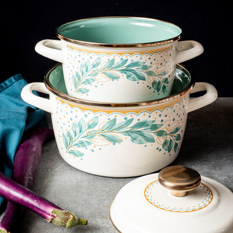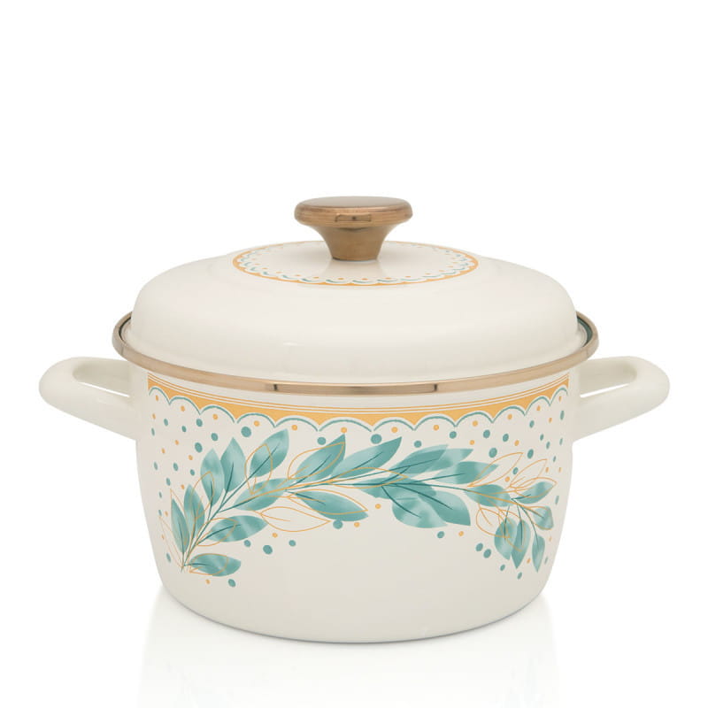 Model z kolekcji Metalac Green Line wyróżnia się subtelnym kremowym kolorem, delikatnym roślinnym motywem oraz eleganckimi wykończeniami. Dzięki temu garnek nie tylko dobrze spełnia swoją funkcję, ale także pięknie prezentuje się w kuchni. To propozycja dla osób, które cenią garnki emaliowane za ich klasyczny charakter, trwałość i bezpieczny kontakt z żywnością.