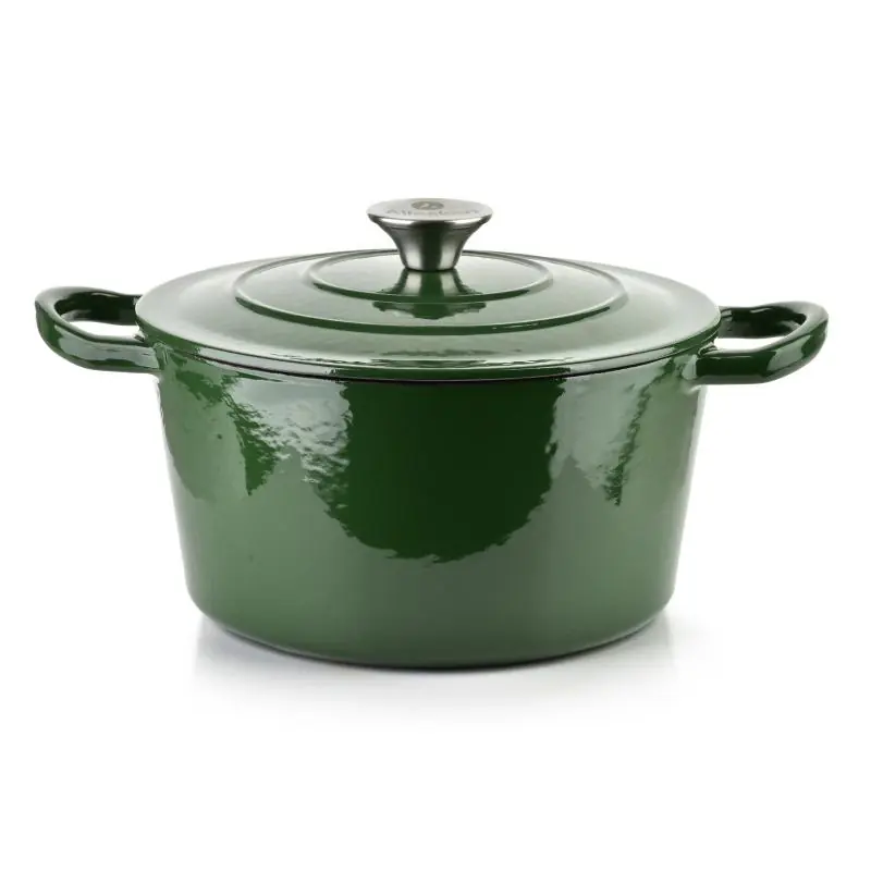 Naczynie wykonane zostało z wysokiej jakości żeliwa, które równomiernie rozprowadza ciepło. Zielona emaliowana powłoka zewnętrzna prezentuje się stylowo i pasuje do wielu aranżacji kuchennych. Pokrywa z dopasowanym uchwytem gwarantuje szczelność, zatrzymując wilgoć i smak potrawy.