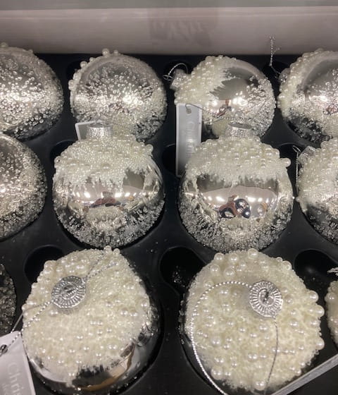 Urocze bombki pokryte pięknymi małymi koralikami przypominającymi perły.