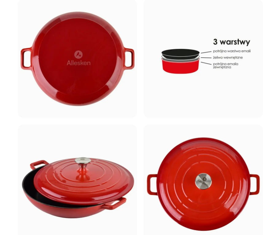 - Wysoka jakość żeliwa – trwałość i równomierne rozprowadzanie ciepła