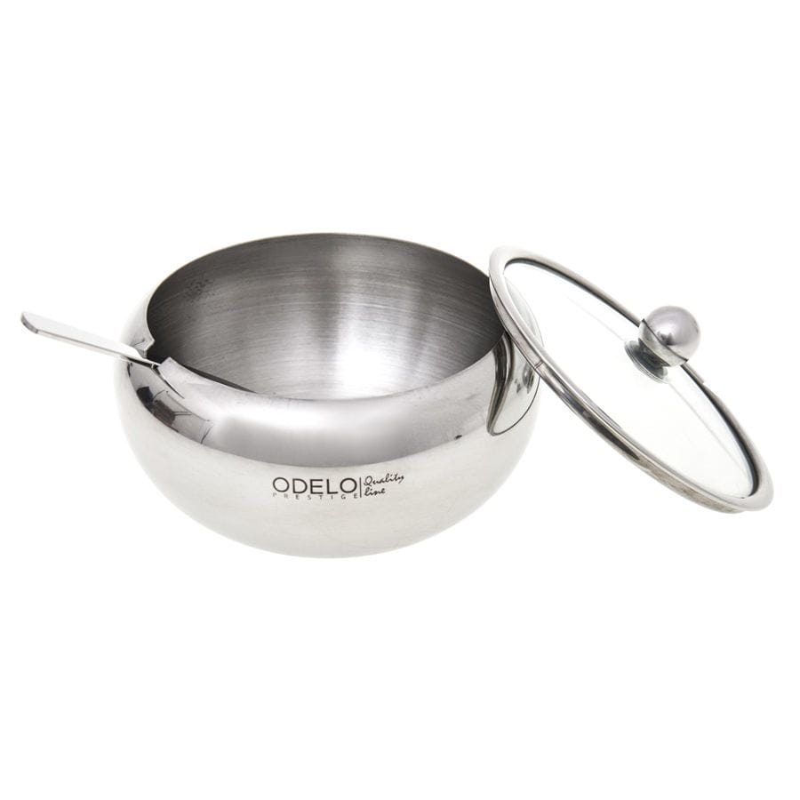 Cukiernica stalowa z łyżeczką i szklaną pokrywką 460ml połysk