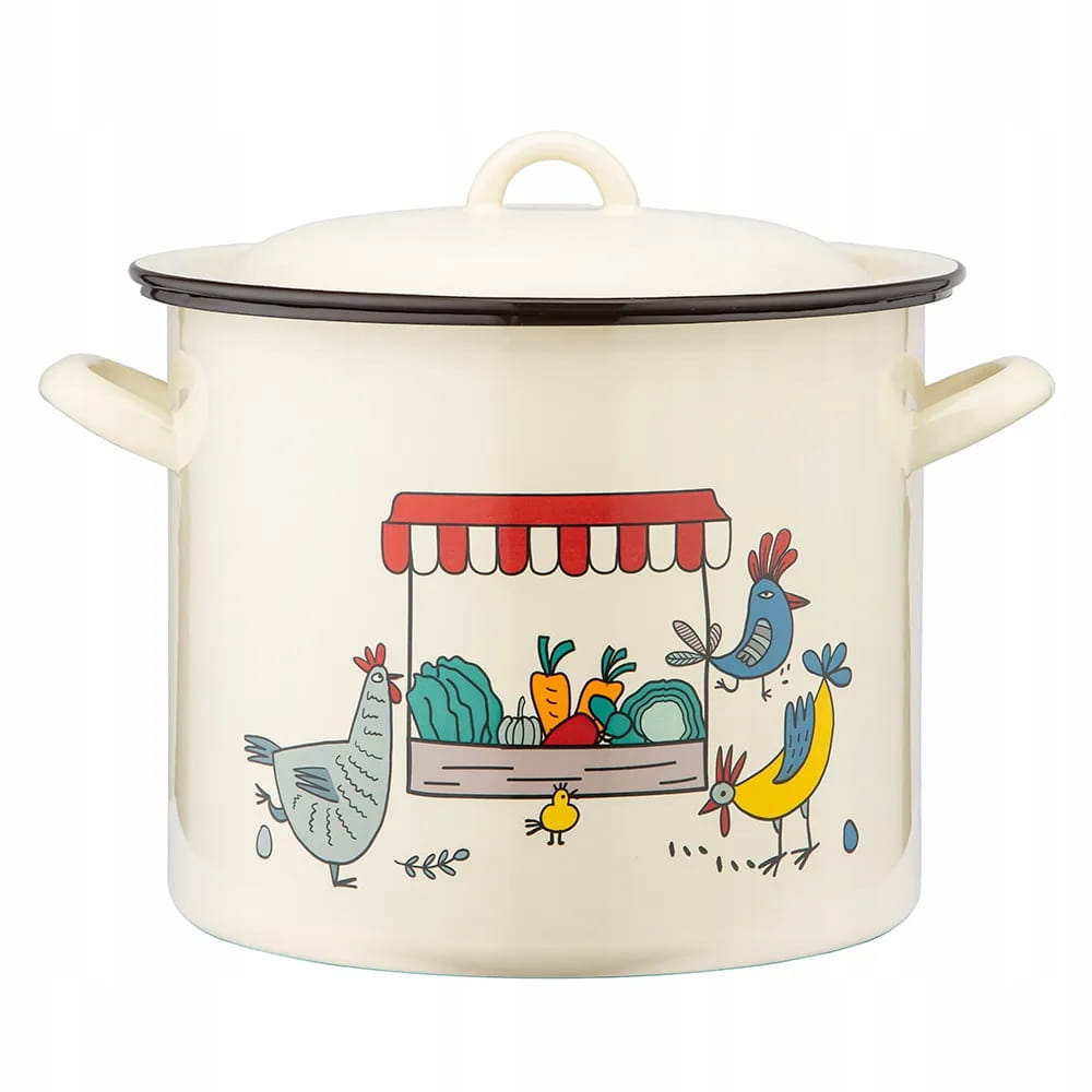 Garnek Emaliowany 10L z Pokrywką – Stylowy Wzór Kurki