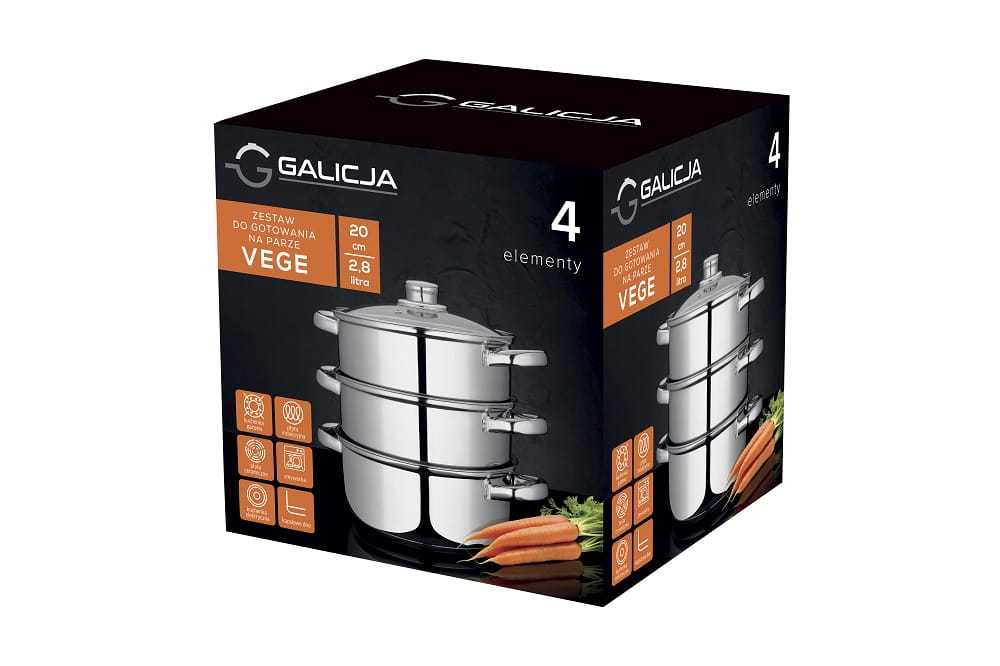 Zestaw do gotowania na parze VEGE 20 cm 2,8L marki Galicja w wersji 4-elementowej to praktyczne rozwiązanie dla osób, które chcą przygotowywać kilka składników jednocześnie. Dzięki dwóm sitkom możesz gotować warzywa, ryby lub mięso na różnych poziomach bez mieszania smaków.