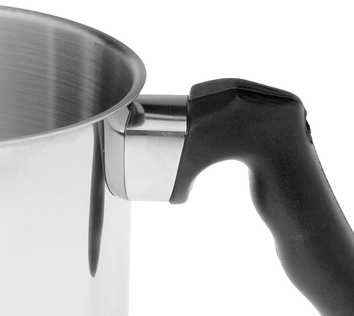 Garnek wyposażony jest w dno kapslowe, które akumuluje ciepło i równomiernie je rozprowadza. Dzięki temu mleko podgrzewa się stabilnie i bez gwałtownego wykipienia.