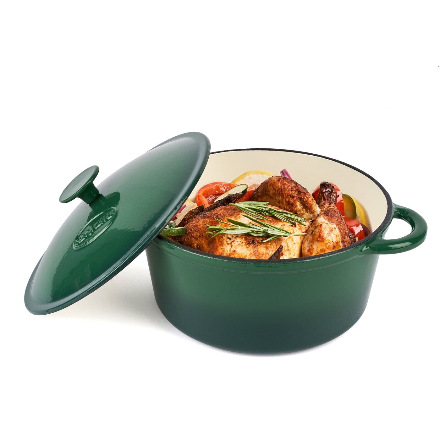Gęsiarka żeliwna emaliowana o pojemności 5l można w niej gotować i smażyć.