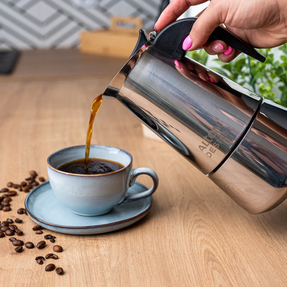 Kawiarka posiada trwałą i odporną na rdzę kontrukcję wykonaną ze stali nierdzewnej.
