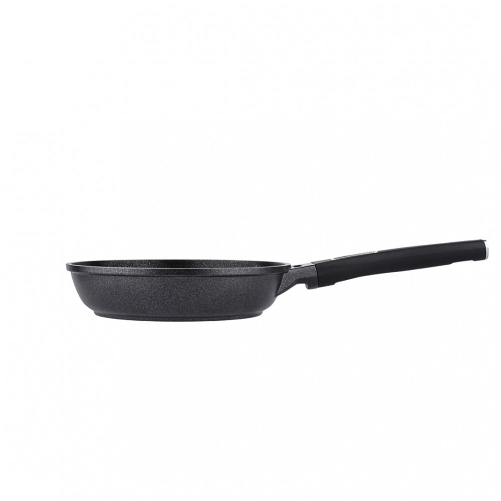 Patelnia posiada grube ścianki i dno, które odporne są na deformacje oraz równomiernie rozprowadzają ciepło,
