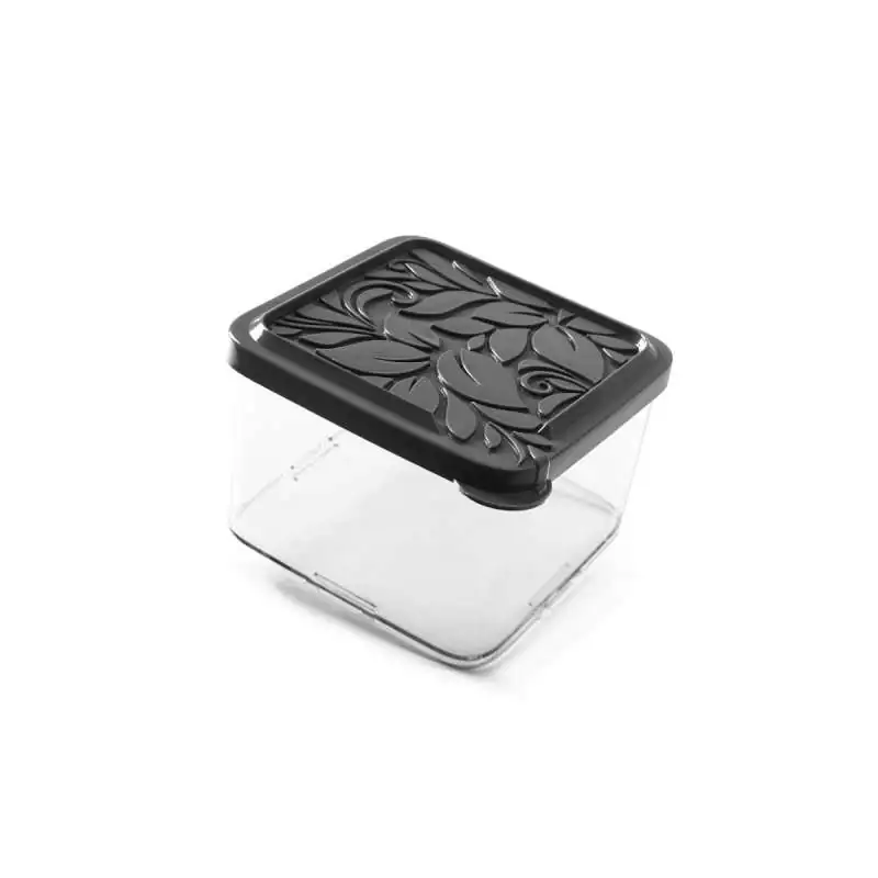 Szukasz eleganckiego i praktycznego rozwiązania do przechowywania produktów sypkich w kuchni? Pojemnik Quadro o pojemności 770 ml to estetyczny, wytrzymały i bezpieczny pojemnik wykonany z tworzywa sztucznego do kontaktu z żywnością. Dzięki kwadratowemu kształtowi i kompaktowym wymiarom idealnie mieści się w szufladach, na półkach lub w szafkach kuchennych. Pokrywa z tłoczonym wzorem liści nie tylko przyciąga wzrok, ale też chroni zawartość przed wilgocią i kurzem.