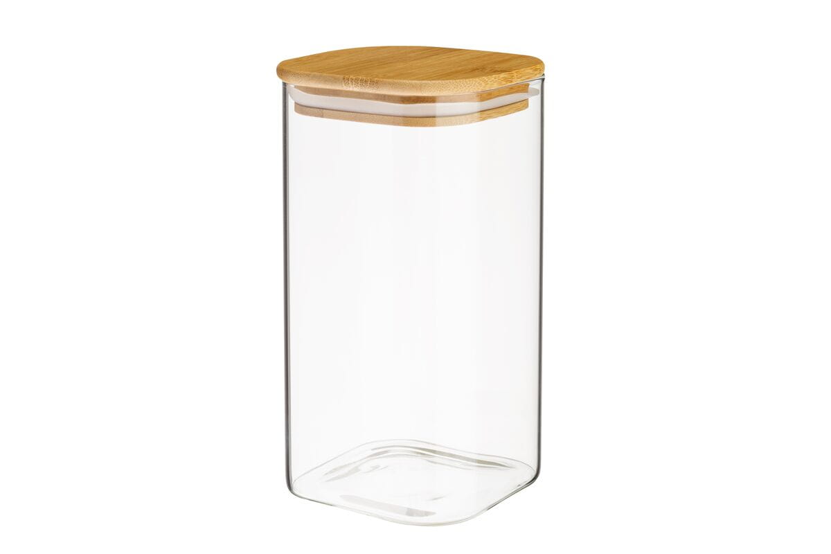 Szklane pojemniki spożywcze JEFF. Praktyczna zamykana osłona wykonana z naturalnego bambusa zapewnia ich trwałość. Dzięki temu produkty przechowywane w pojemnikach pozostają świeże. Dostępne różne rozmiary. Pojemniki świetnie sprawdzają się w każdej kuchni, utrzymując wszystko w porządku.