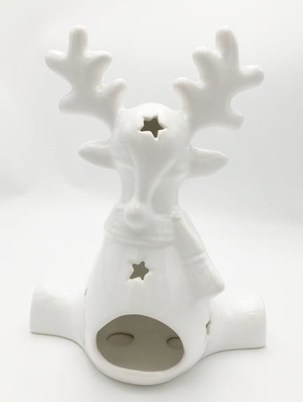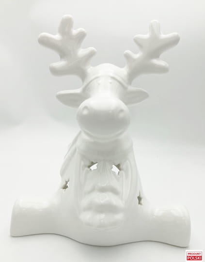 Renifer siedzący wykonany z wysokiej jakości ceramiki.