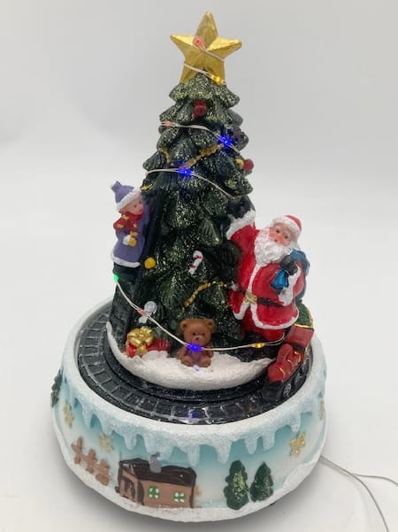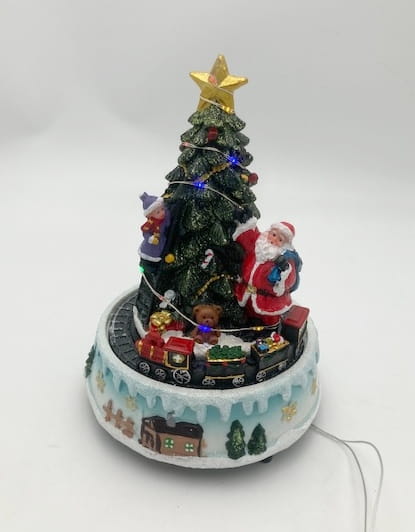Scenka świąteczna przedstawiająca choinkę z Mikołajem.