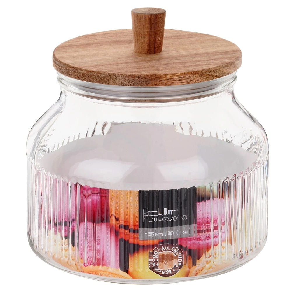 Szklany pojemnik 1,7 L na produkty sypkie z drewnianą pokrywką – Excellent Houseware