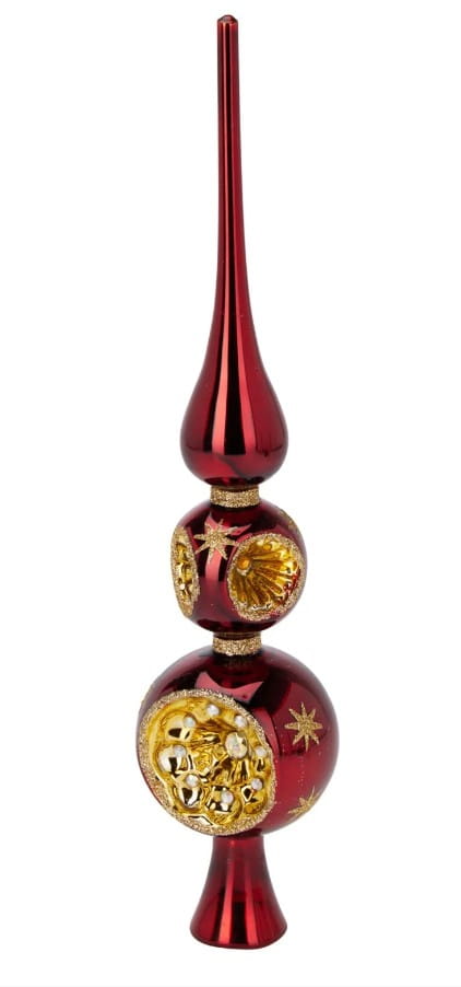 Szpic ma smukły, elegancki kształt i delikatne zdobienia w stylu retro, dzięki czemu doskonale komponuje się zarówno z klasycznymi, jak i nowoczesnymi ozdobami. Otwór u podstawy pozwala na łatwe i stabilne umocowanie go na czubku choinki. Produkt dostępny w trzech wariantach kolorystycznych – złotym, czerwonym i zielonym – umożliwia idealne dopasowanie do reszty dekoracji.